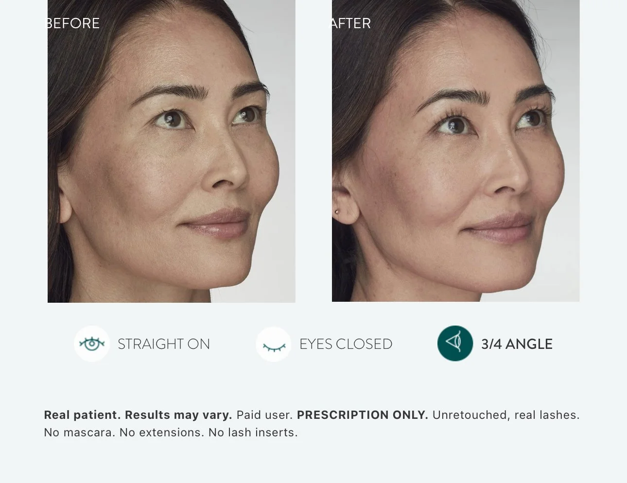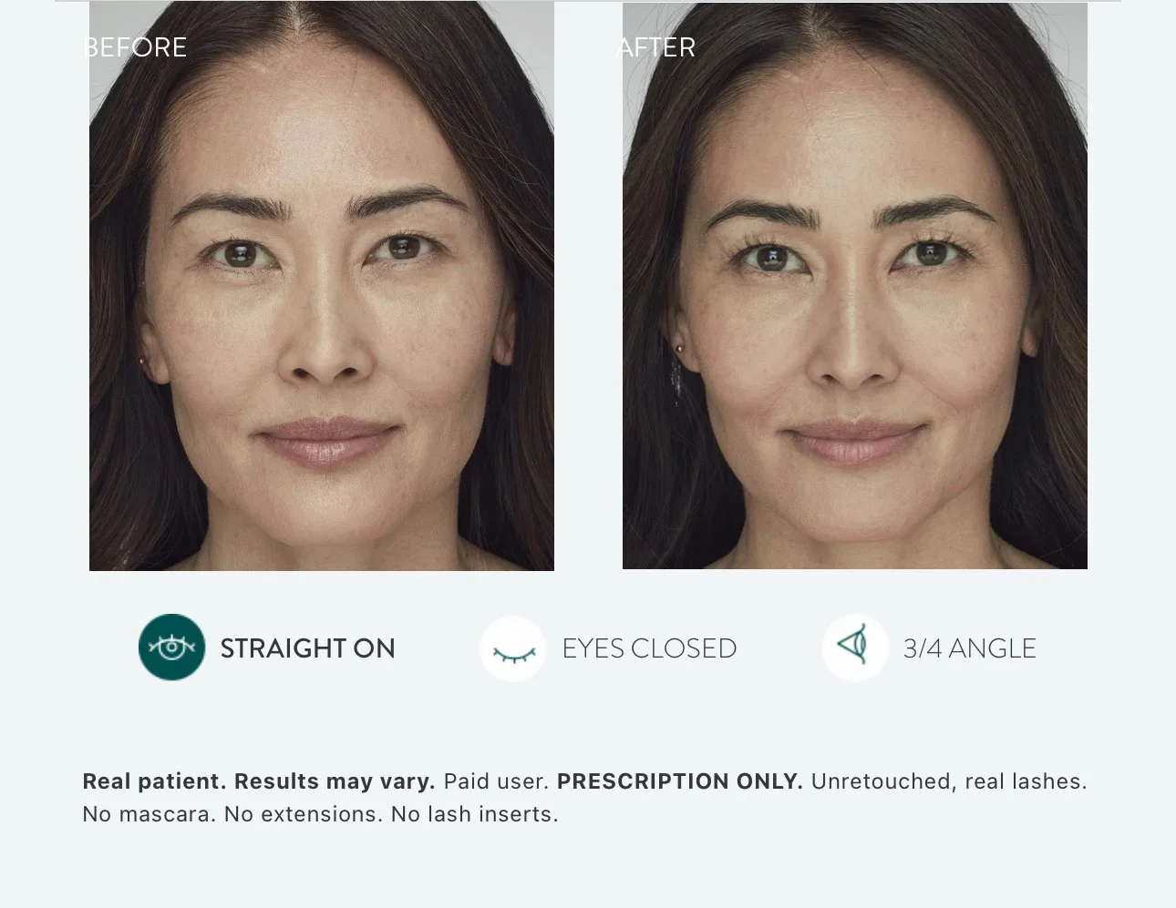Latisse® is an FDA-approved prescription medication used to grow longer, fuller, and darker eyelashes after 16 weeks of use. AT 16 weeks in clinical studies, results showed that layers were 106% fuller, 25% longer, and 18% darker.